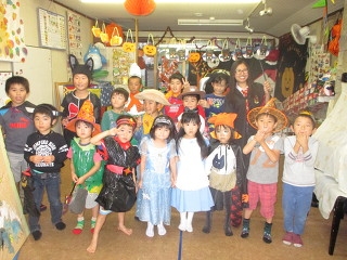 秋も深まってきましたね。今年も恒例のハロウィンパーティー。思い思いのコスチュームで楽しみました。今年はトマト周辺をねり歩き・・。途中でお菓子をもらいました。 手作りハロウィンバックを持っていっぱいになったお菓子たちを見て満足げな^^子供達でした。