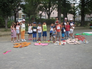 お祭りも無事終えて幼稚園児、小学生は夏休みに突入。夏祭りでは懐かしいお友達も顔を見せに寄ってくれました。久しぶりに会えて嬉しいひとときでした。8月はお泊りもあります。通常講座では水遊びなど夏にしかできないお遊びもたくさん計画中です。毎日の暑さにちょっと気持ちも解放的になりますが、リズムを整えつつ、夏の思い出もたくさんつくってくださいね。宿題や勉強も時間を決めてだらだらな一日にならないように計画してください。