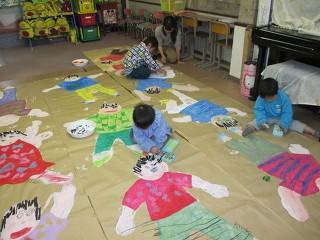 早いもので節分も終わり立春。各クラスとも今年度の締めくくりの季節を迎えました。大きく成長し、一人一人の個性も育っています。未就園児さんはこんなに大きな人物画も先生と一緒に描けるようになりました。筆使いもとっても上手!!です。