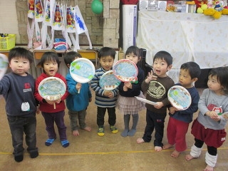 未就園児は羊さんの風船羽子板、たこ作りなどでお正月遊びを楽しんでいます。体調を崩し欠席が目立った年明けでした。体調を整えて健康な一年にしたいものです。
