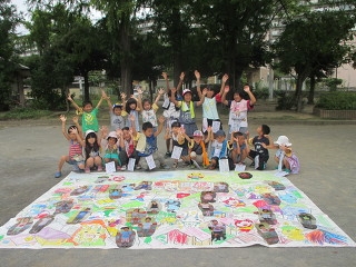 先週末に年中さん以上でお泊りしました。体操の先生と一緒にスタンプラリー、妖怪ウオッチの地図に自分の妖怪をのせて街づくり、メダルさがし、大きなシャボン玉あそび、様々な遊びコーナーで景品ゲット、盛りだくさんの内容でみんな元気に楽しみました。食欲も旺盛でおかわり続出。カレーをたくさん食べました。