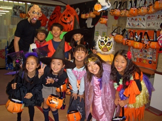 10月26日から各クラスごとまたは合同でパーティーをしました。各自で作ったかぼちゃのキャンディーボックスに「Trick or Treat」とお菓子をたくさんもらってたりJason先生とゲームをしたり楽しいひと時でした。数日前から「今年は・・・になるんよ!」と話題のひとつでした。お母様方にもご協力いただき工夫を凝らした衣装もありました。その一つ一つのご協力が子供達の思い出につながり豊かな心を育てていくのだと感じました。ハロウィンは一人一人が主役!!笑顔いっぱいのパーティーでした。