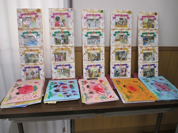 9月末に未就園児コースでおまつりごっこしました。ポシェットにチケットを入れて制作したものをママがお店屋さんになってお買い物。みずよーよーふうせん、スーパーボールすくいなどもお祭り気分で楽しみました。お家でもおまつりごっこしています~と。嬉しいご報告も。おまつり風に装飾もし、まめしぼりのはちまきもつけてご家族でお遊びしました。昨年がお店屋さんごっこ。今年のお祭りも子供たちの作品もいっぱい。それに本物の食べ物なども販売しましたよ。親子体操をして無事に一日元気に楽しみました。思い出になってくれたら嬉しいです❣❣