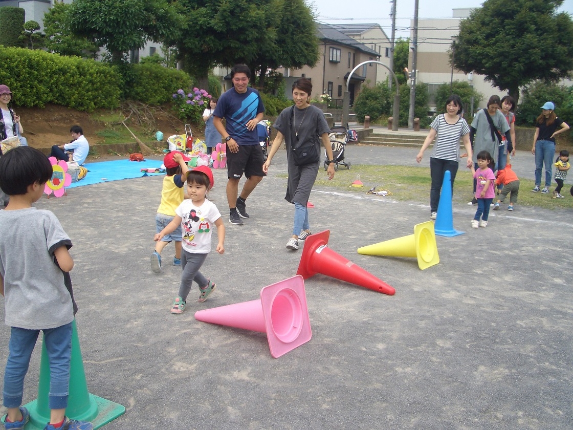 雨マークが消えて、快晴の中で秋レクしました。しいの木台に移転して3回目の秋レクです。2年続けて☂でした。今年はなんてラッキーな。眩しい太陽が。ご家族の皆様と楽しみました。親子体操。リトミックなど。講座の中で行っているおしりフリフリダンス、パンダもパン屋さんもゲームしました。親子で楽しんでいる姿はとってもほほえましく、運動不足かいしょうの一日になったと思います。